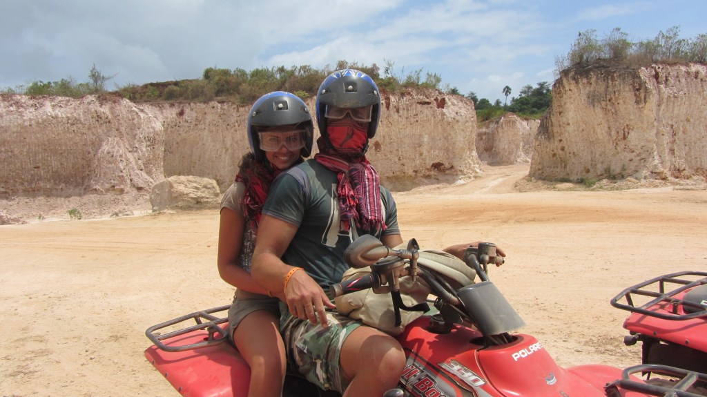 - Escursione con il quad: Questo era uno dei nostri obiettivi ancor prima di partire, e per poco ci stava per scappare dal momento che essendoci poche disponibilità bisogna prenotarsi subito per non perdere il posto!! E’ stata un’esperienza bellissima, a parte il divertimento di scorazzare per l’isola in groppa a questi fuoristrada, per la gioia dei maschietti che tra la miniera di corallo potevano fare casino e alzare mucchi di polvere, abbiamo avuto la possibilità di addentrarci in un villaggio tipico del posto. Dopo una strada che ci ha portato all’interno dell’isola, siamo arrivati nel villaggio. I bambini ci aspettavano impazienti e al nostro arrivo ci hanno riservato calorosi sorrisi e festosi schiammazzi. Noi ci eravamo premuniti di quaderni, matite e zainetti da regalare a questi frugoletti, che per qualsiasi cosa ti ricompensano con l’entusiasmo di ricevere qualcosa di prezioso! Ci siamo subito amalgamati con la gente del posto che molto educatamente ci ha accompanato nelle loro dimore e da cui abbiamo colto una grande umiltà e dignità. Le case sono molto misere e allestite con ammassi di pietra e terra, ma quello che ci ha colpito molto è il fatto che loro comunque per entrare in casa si tolgono le scarpe! I bambini sono impazziti quando uno del gruppo gli ha mostrato con il cellulare il video di Waka Waka ed è sempre emozionante vedere quanto si divertono e quanto apprezzano anche le piccole cose! Con l’immagine di quegli occhioni scuri, e quei musetti vispi e malinconici allo stesso tempo abbiamo ridato la tranquillità a quel piccolo angolo di mondo per tornare in sella ai nostri motori e continuare l’esplorazione dell’isola.