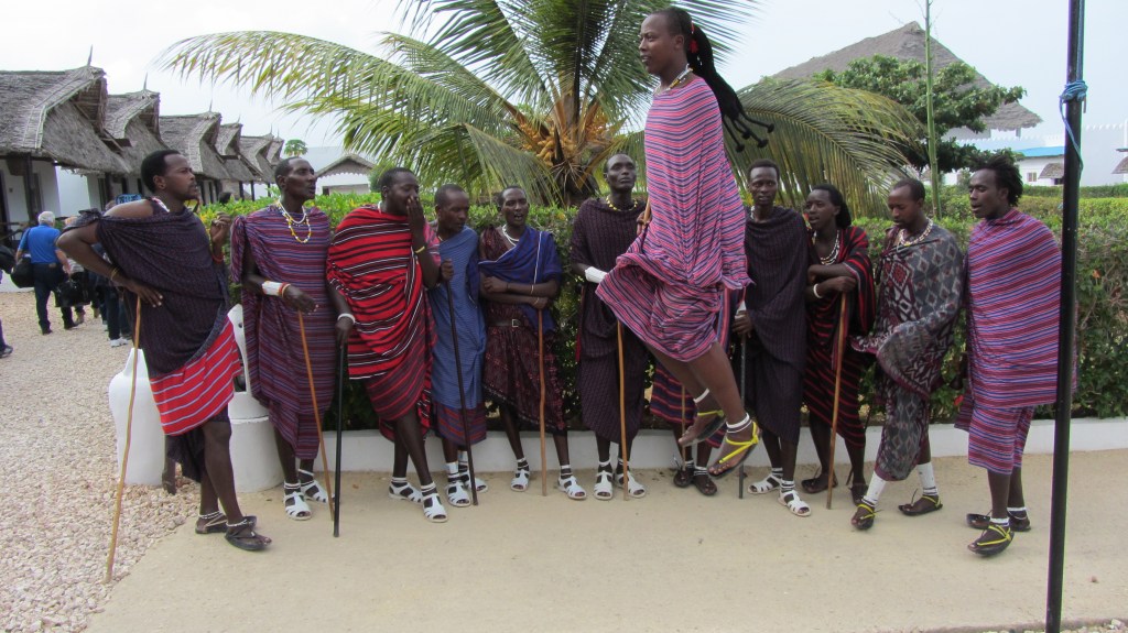 Arriviamo al villaggio e veniamo subito accolti da un gruppetto di masai (più o meno veri) che ci propongono un rituale di benvenuto, assaporiamo il cocktail fresco che ci viene offerto e poi ci ritiriamo nei bungalow. Sono le 10 di mattina, il cielo è un pò nuvoloso, il bungalow è vicino alla spiaggia, molto carino, con tanto di baldacchino…buttiamo le valige, siamo come due bambini nel paese dei balocchi, vorremmo correre in spiaggia, esplorare il villaggio, programmare le prossime giornate, andare a mangiare qualcosa, ma….proprio come due bambini crolliamo sul letto e ci addormentiamo per un paio di orette!!